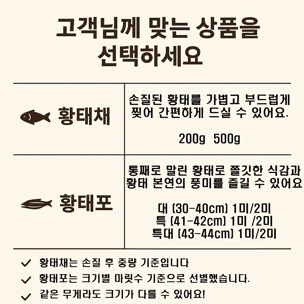 - 황태 종류 선택 -