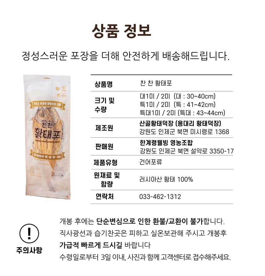 [한계령웰빙] 인제 용대리 황태채 황태포